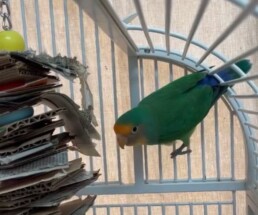Male – Age unknown. Jade is a playful, spunky little escape artist of a Lovebird!